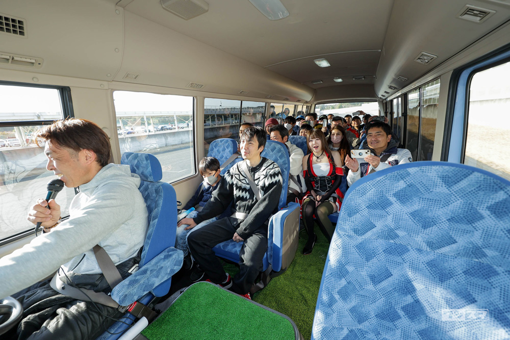 先導車付きの体験走行。追い抜き不可、乗車定員まで同乗OK、ドライバー装備品不要。ご家族やご友人とお楽しみください。澤圭太によるコース解説バスツアーつき。